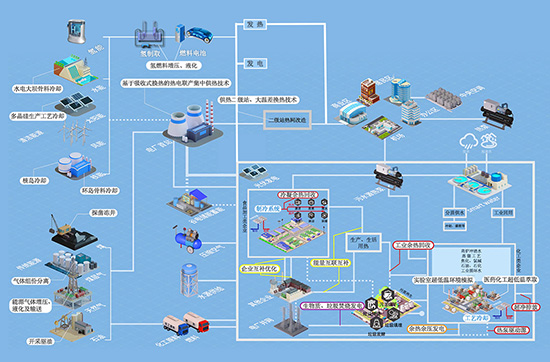建立冷/熱/水/汽/電/污/廢等資源的多能互補(bǔ)系統(tǒng),實(shí)現(xiàn)產(chǎn)業(yè)園區(qū)一體化集成功能系統(tǒng),通過對(duì)能源轉(zhuǎn)換、能源應(yīng)用、余能回收、廢棄物處理各環(huán)節(jié)的整體設(shè)計(jì)、統(tǒng)一規(guī)劃和分級(jí)利用,實(shí)現(xiàn)從-271℃—200℃范圍內(nèi)的能源階梯級(jí)利用、余能綜合利用、能源高效利用,大幅度提高能源的總體效率,以智慧生態(tài)平臺(tái)優(yōu)勢,實(shí)現(xiàn)設(shè)備、功能、資源的多重集約,為客戶提供高附加值的解決方案。